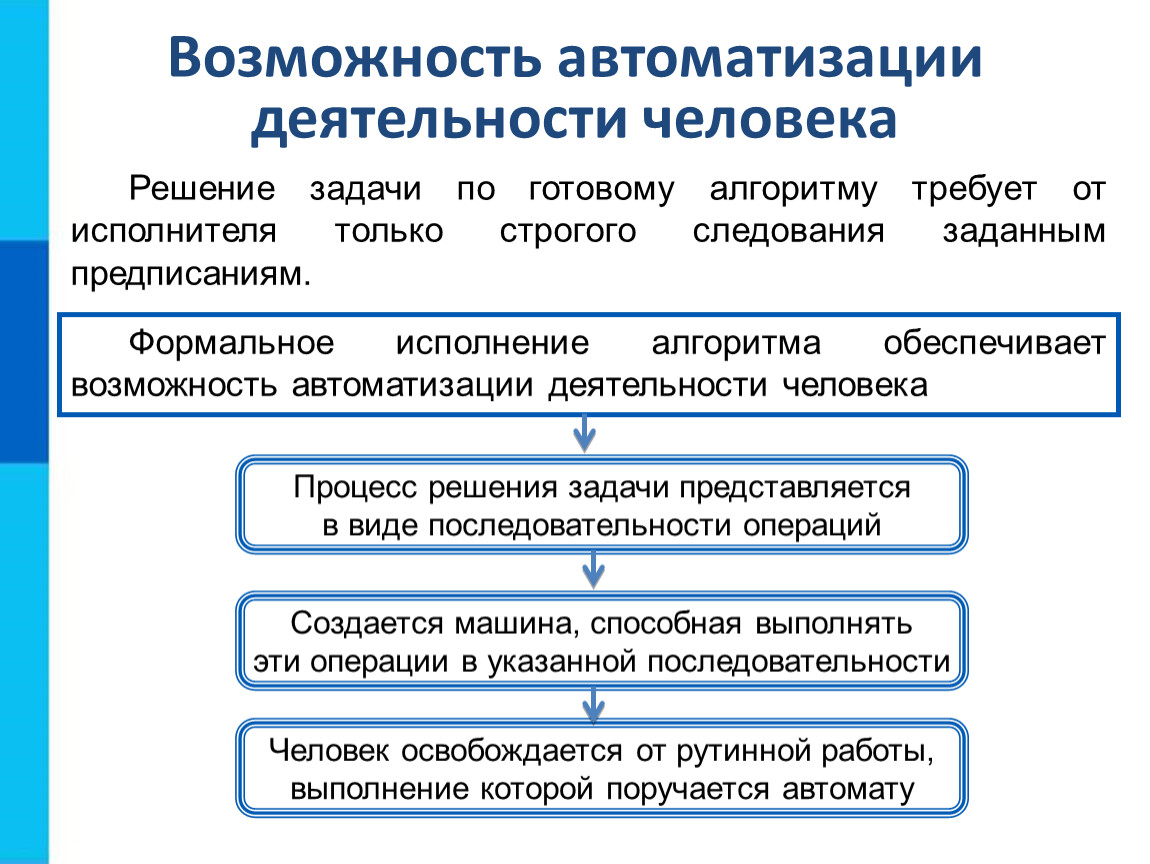 Формальное исполнение алгоритма обеспечивает возможность автоматизации деятельности человека