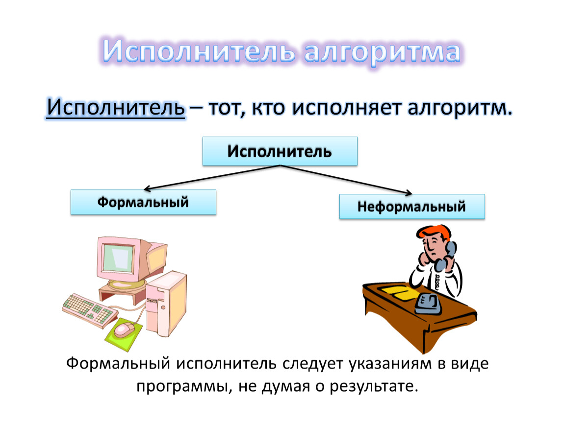 Формальный исполнитель следует указаниям в виде программы, не думая о результате.