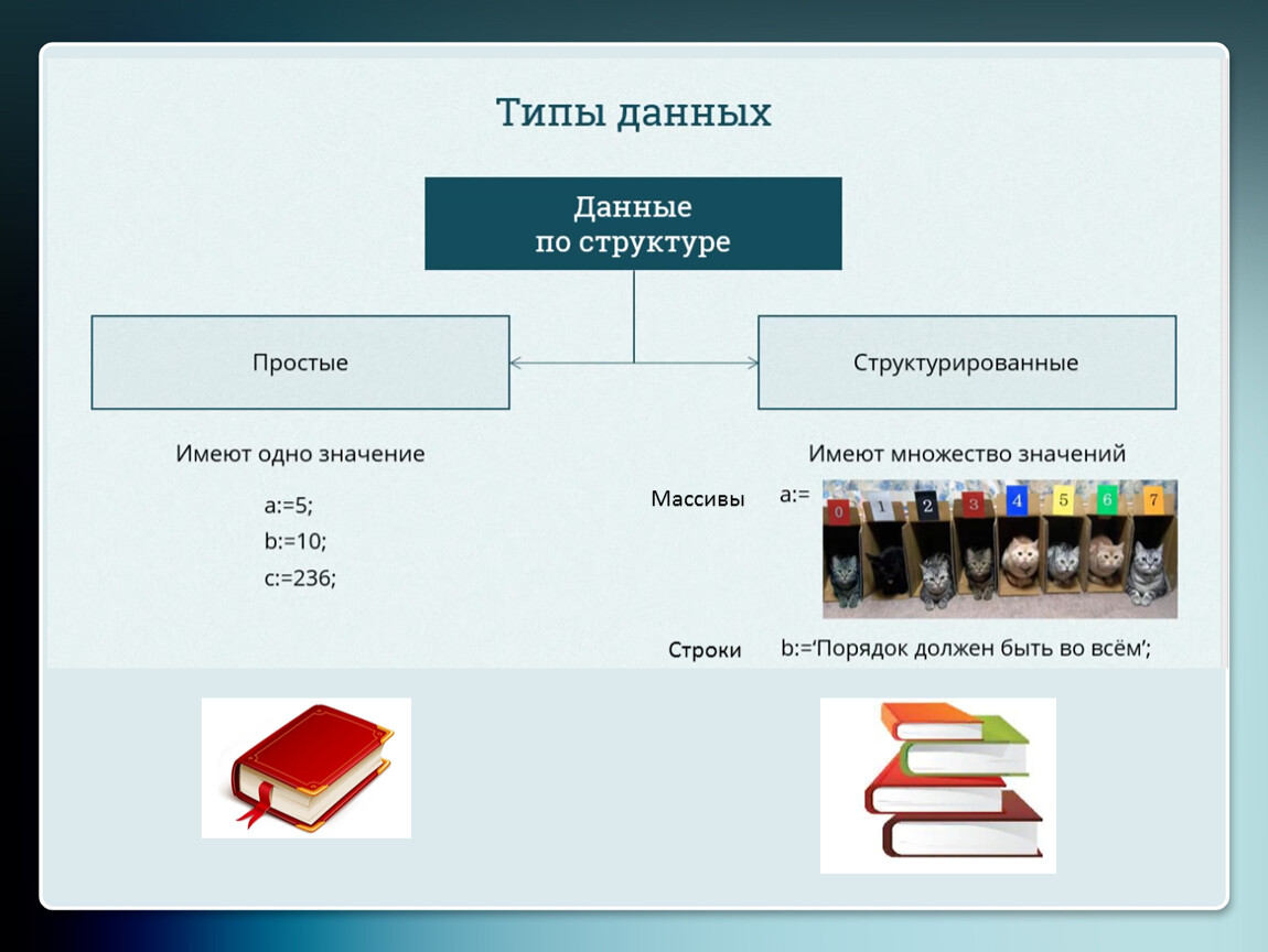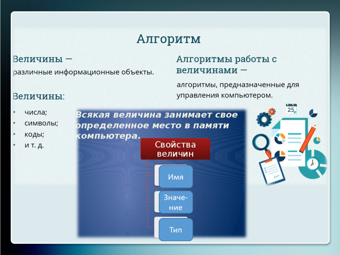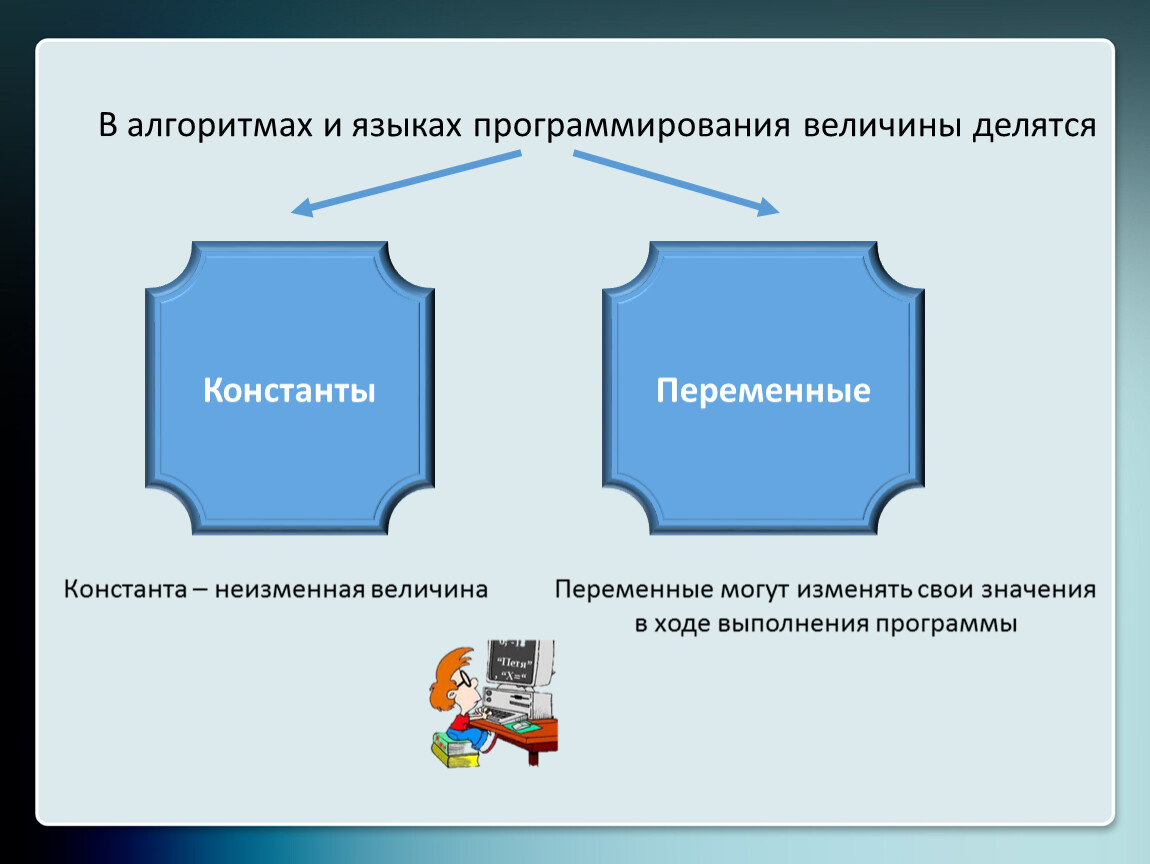 В алгоритмах и языках программирования величины делятся