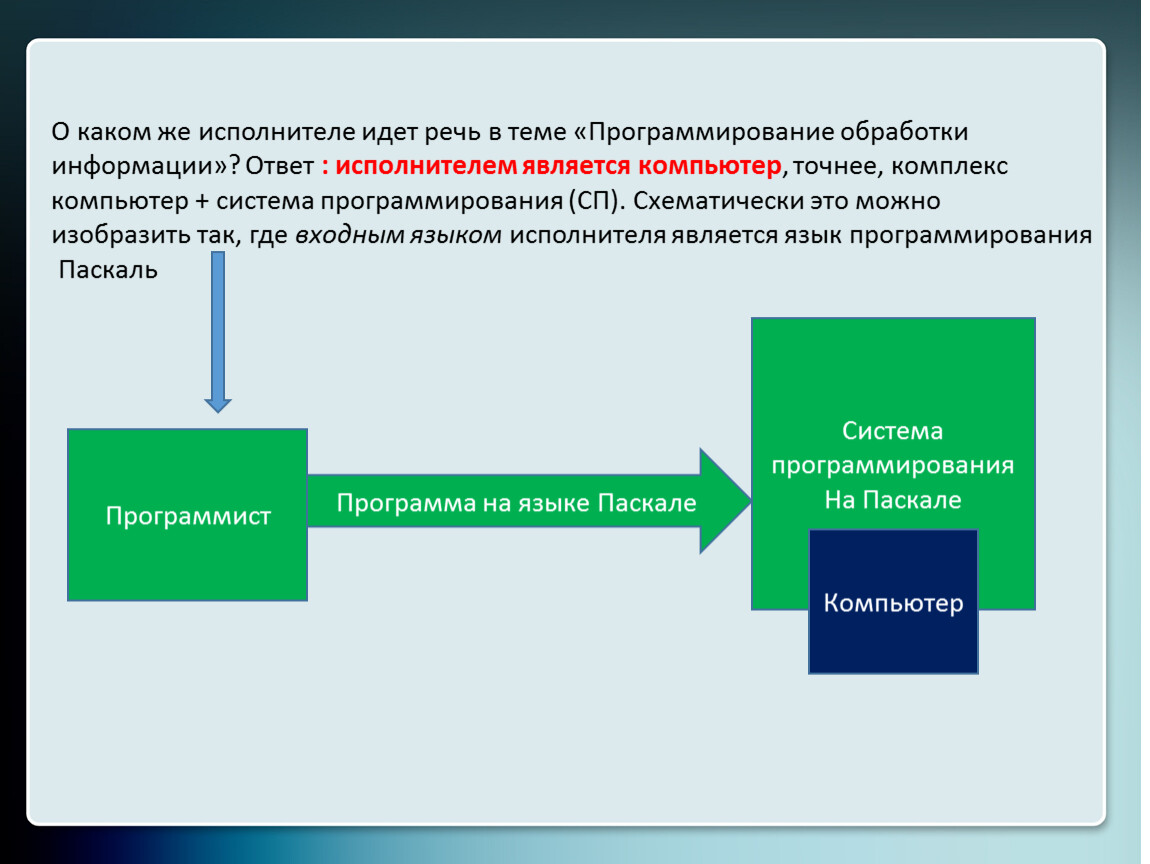изобразить так, где входным языком исполнителя является язык программирования