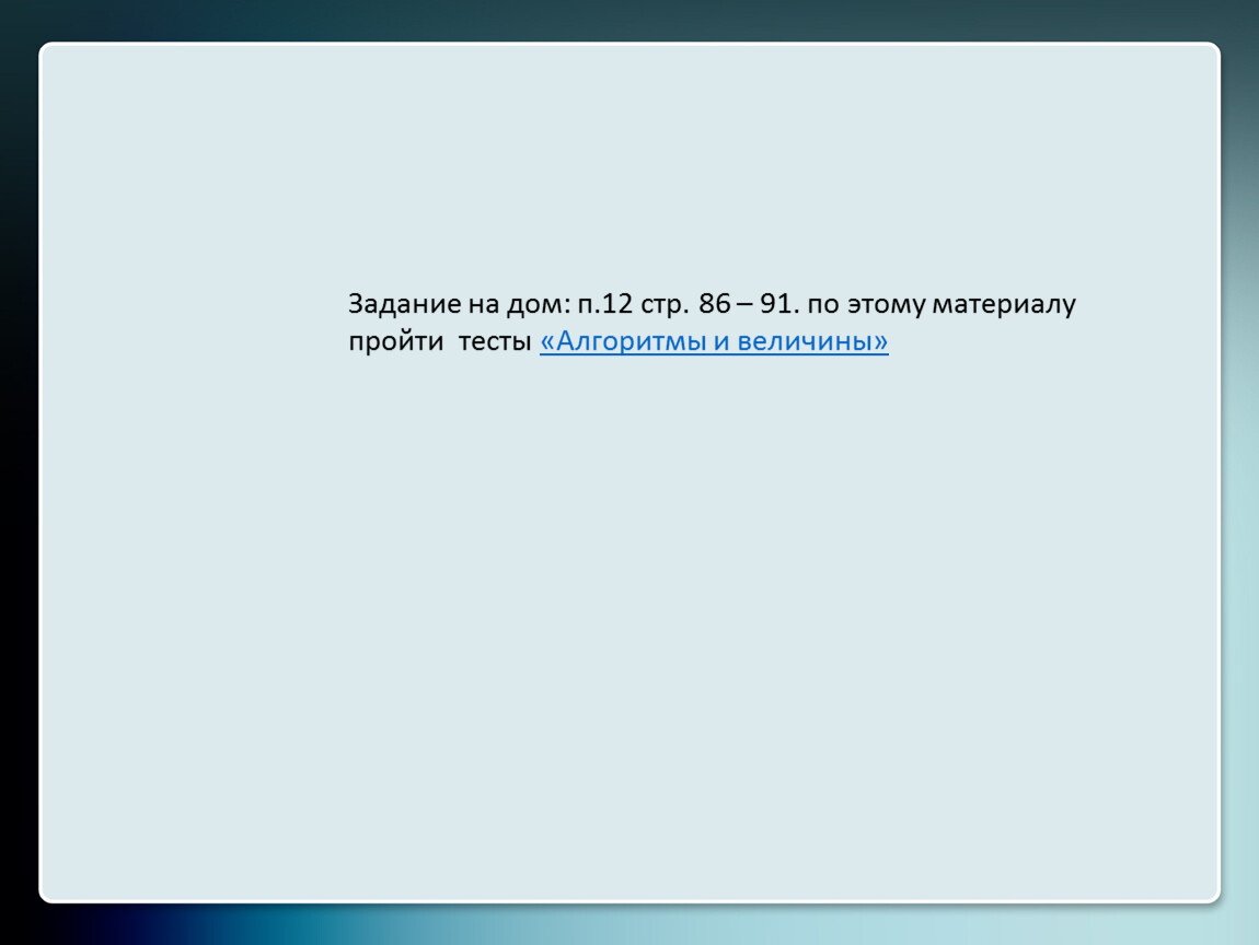 Закрепление и углубление знаний алгоритмизации.