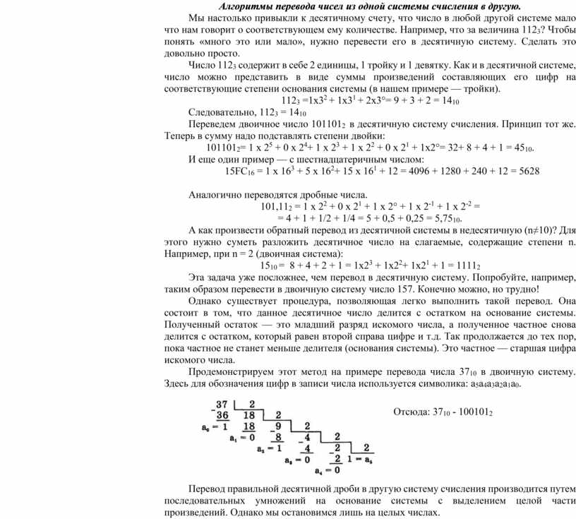 Алгоритмы перевода чисел из одной системы счисления в другую.