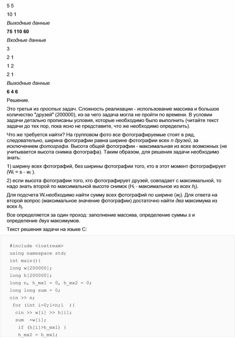 2) если высота фотографии того, кто фотографирует друзей, совпадает с максимальной, то надо знать второй по максимальной высоте снимок (Hi - максимальное из всех hj).