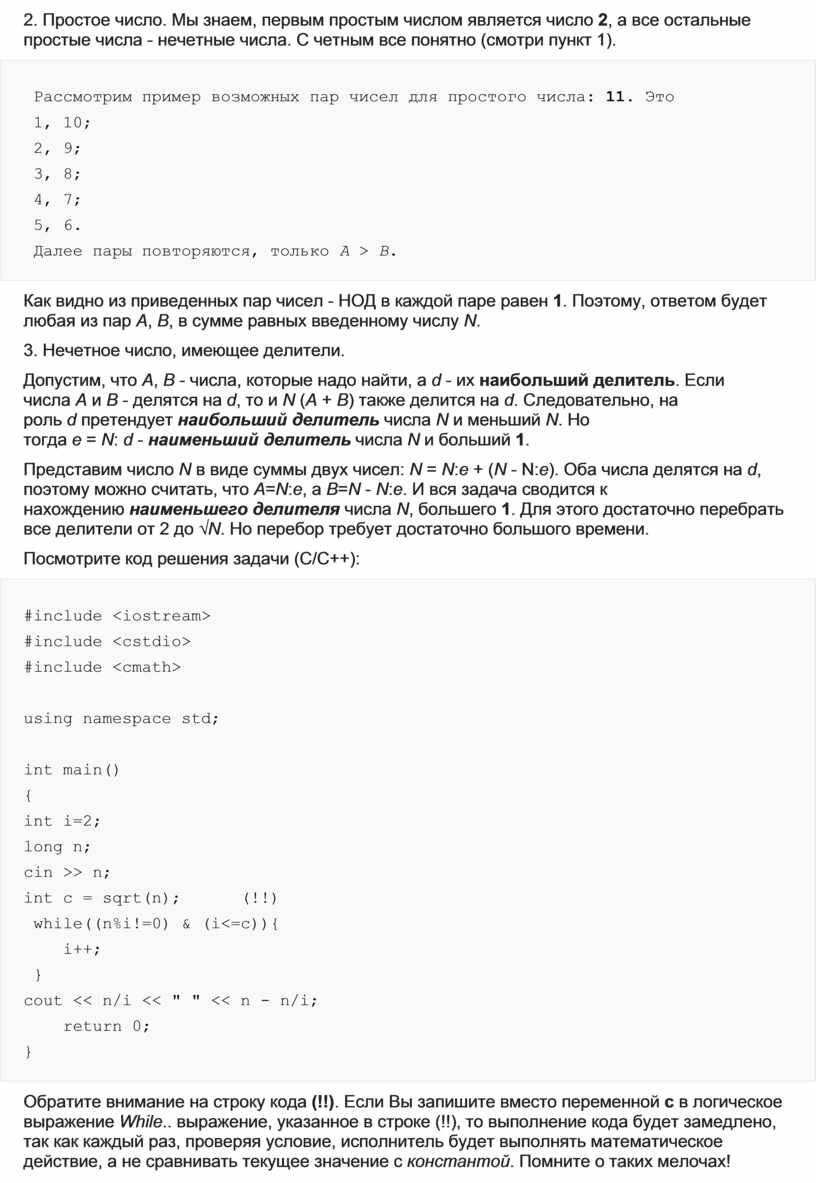 Обозначим через y=c / (2 * x). Откуда, x = c / (2 * y) ≥ b и нам предстоит найти максимальное значение y (оно должно быть целым!). После некоторых математических преобразований, мы получаем ответ вот в таком виде: