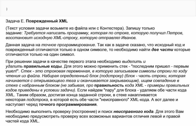 Задача Е. Поврежденный XML