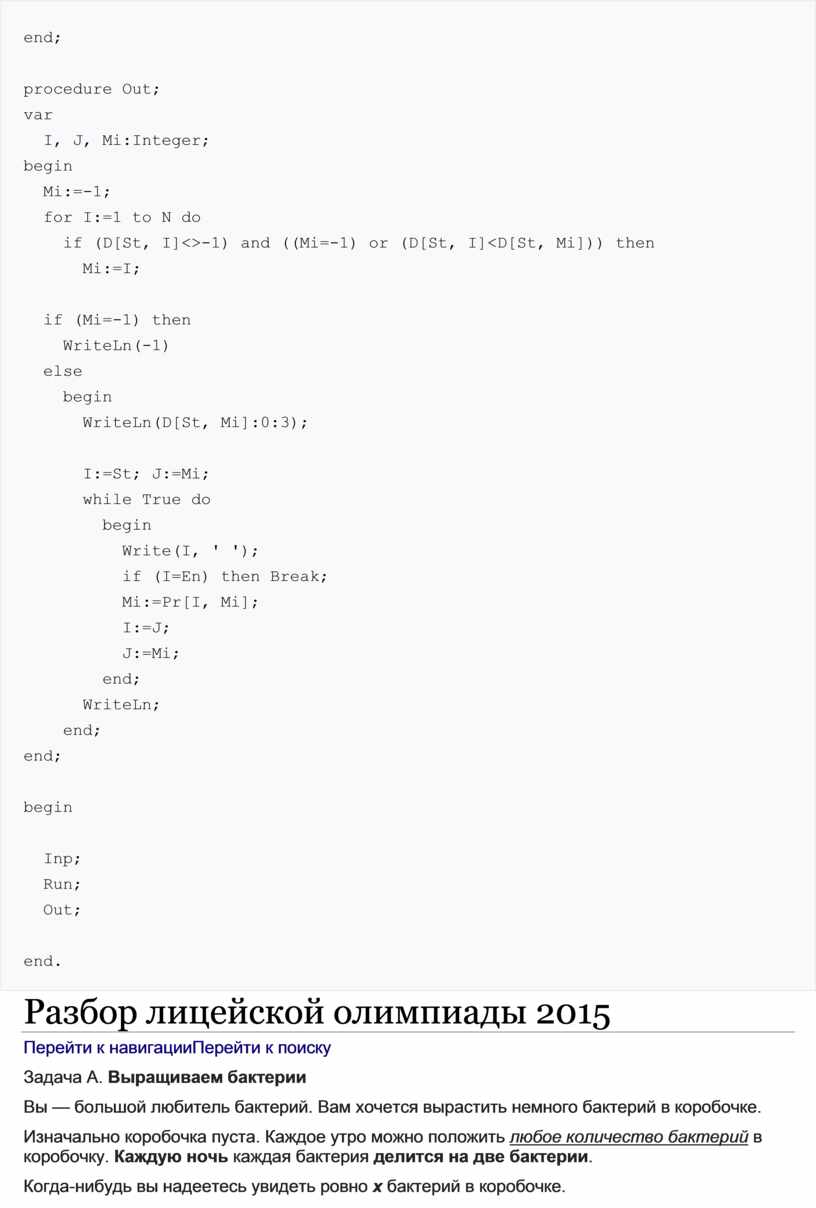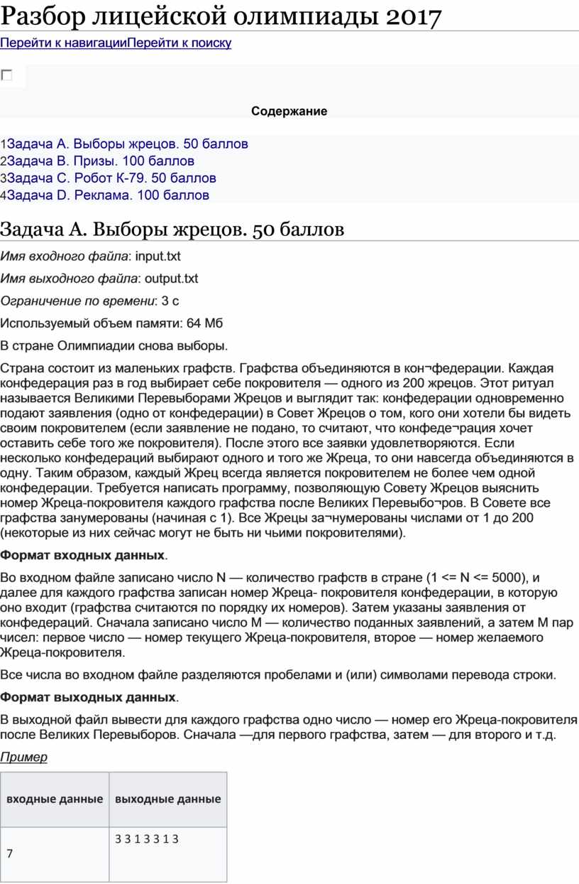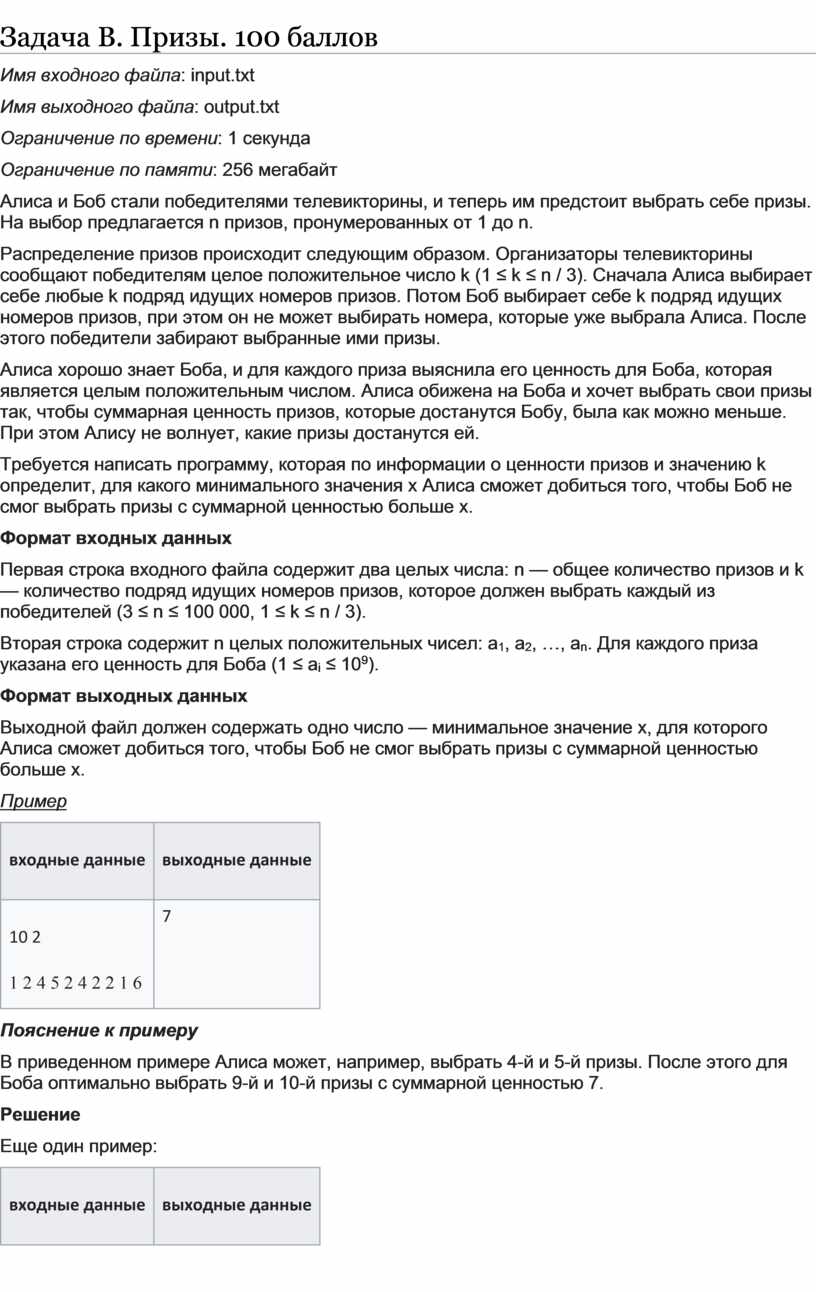 * что требуется вывести как результат.