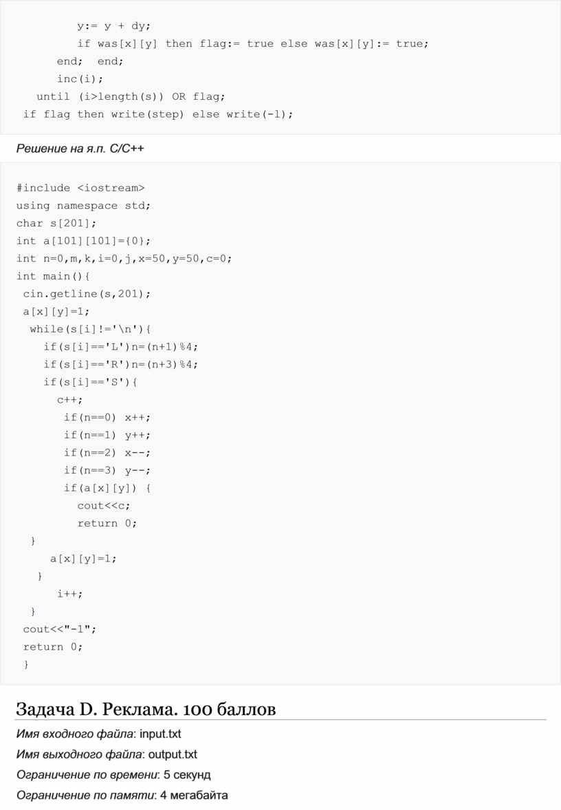 Текст решения задачи на языке С: