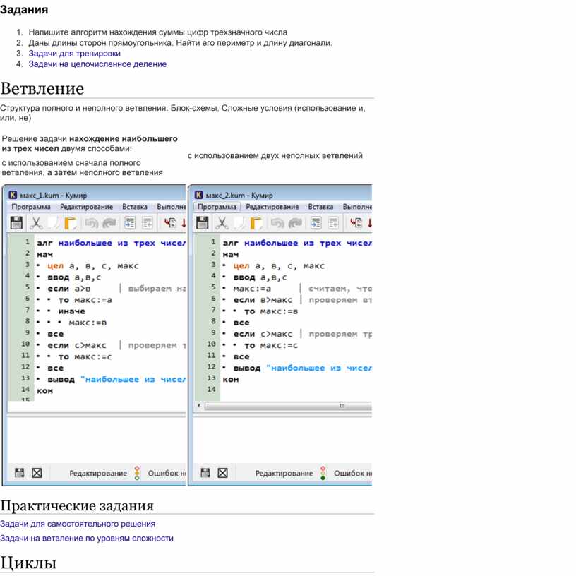 Примеры простых алгоритмов и практическое задание