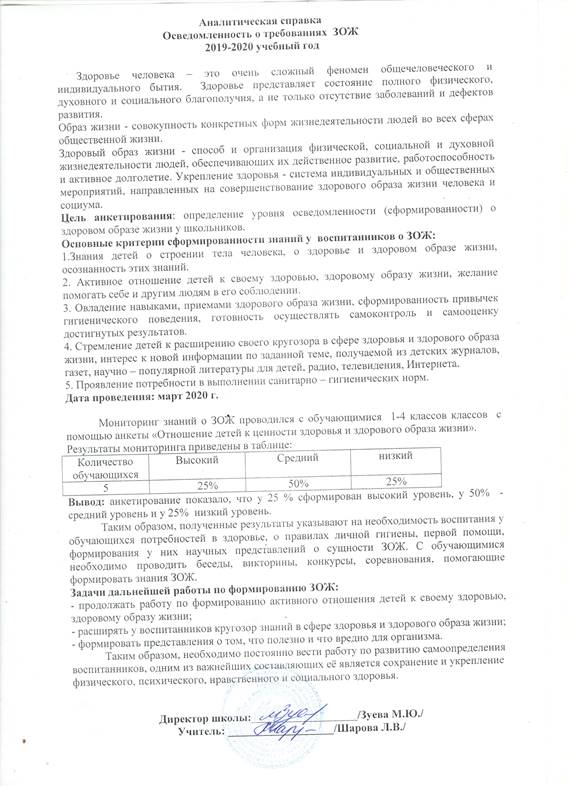 Аналитическая справка об осведомленности о требованиях ЗОЖ 2019 - 2020 учебный год