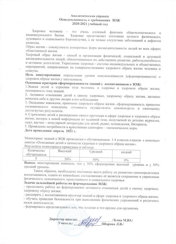 Аналитическая справка об осведомленности о требованиях ЗОЖ 2020 - 2021 учебный год