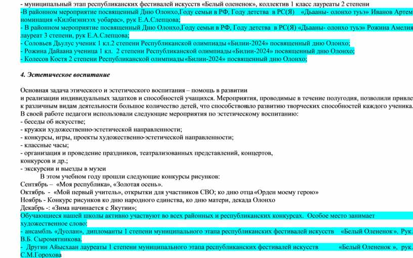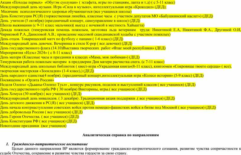 Для целостного анализа работы школы были представлены анализы воспитательной работы за 1 полугодие 2024-2025 учебный год, выполненные классными руководителями .