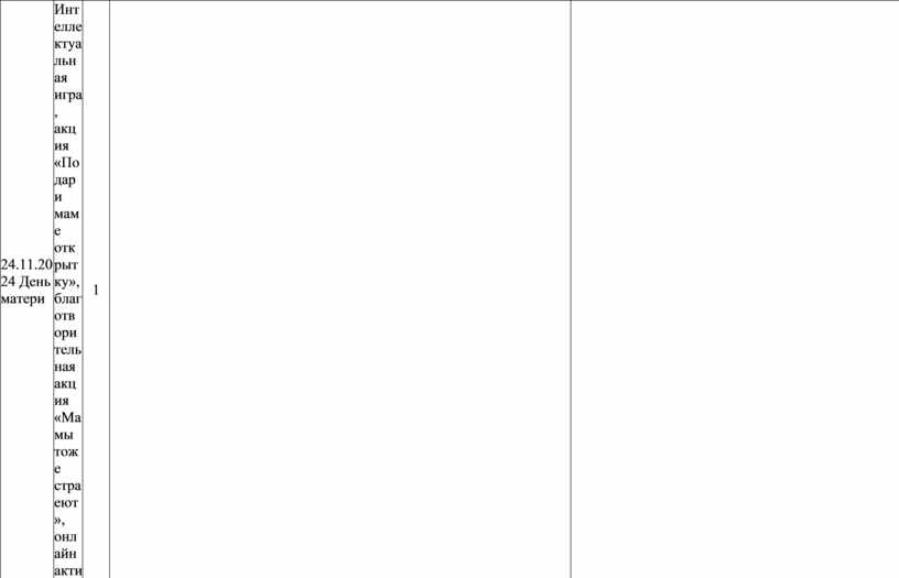 Интеллектуальная игра, акция «Подари маме открытку», благотворительная акция «Мамы тоже страеют», онлайн активность «Мам, я сделал» |