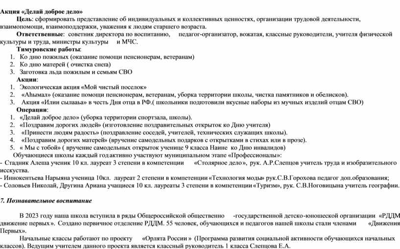 Помощь ветеранам (заготовка дров), акция «Внуки по переписке», мероприятие «Цифровая грамотность для всех» |