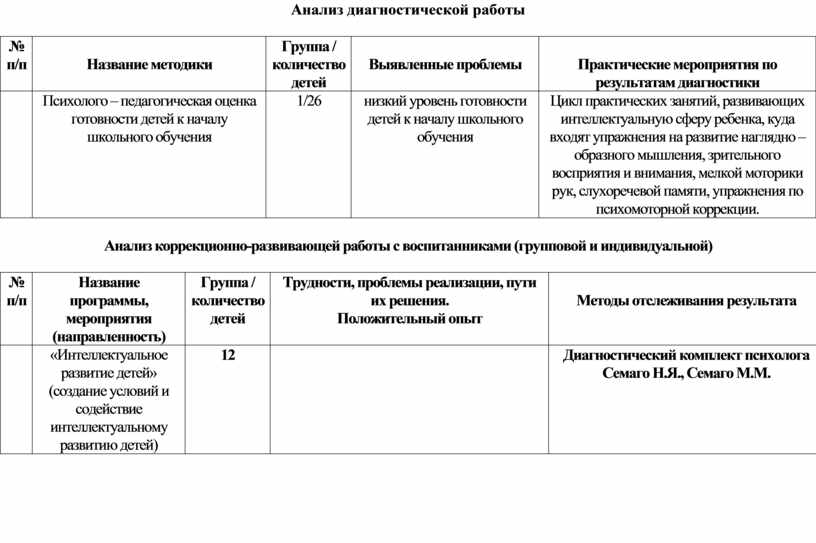 Анализ коррекционно-развивающей работы с воспитанниками (групповой и индивидуальной)