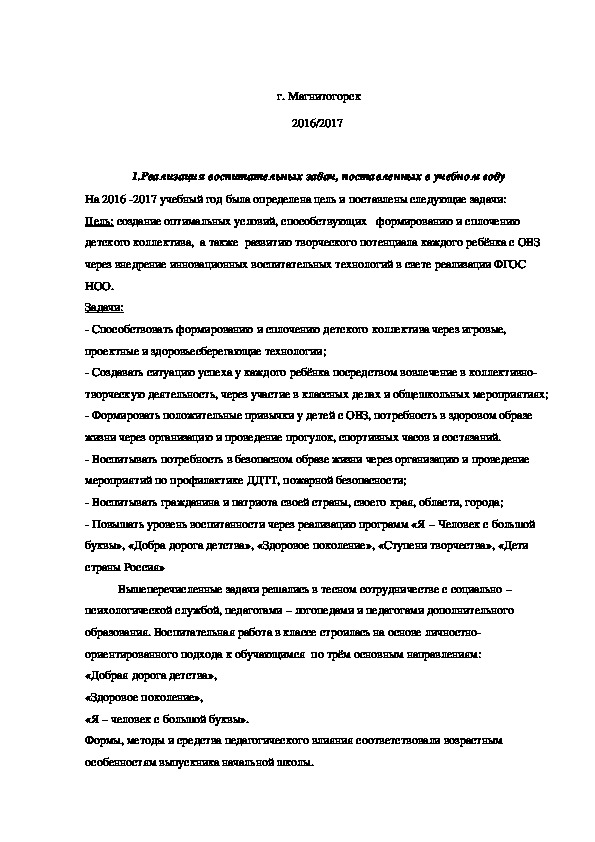Представлен аналитический отчёт воспитателя группы продлённого дня за 2016 -2017 учебный год