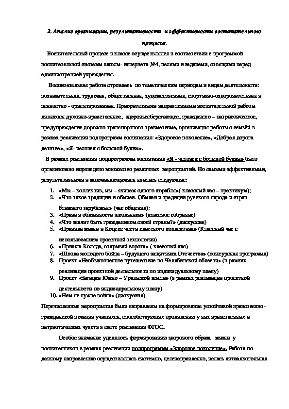 особенностям выпускника начальной школы.2. Анализ организации, результативности и эффективности воспитательного