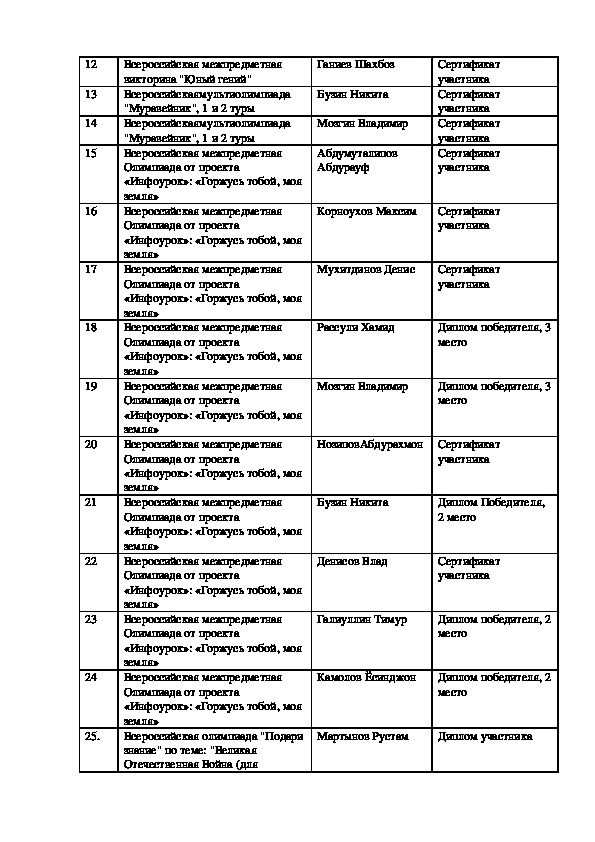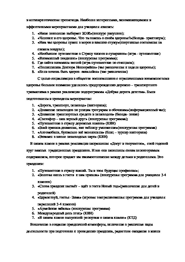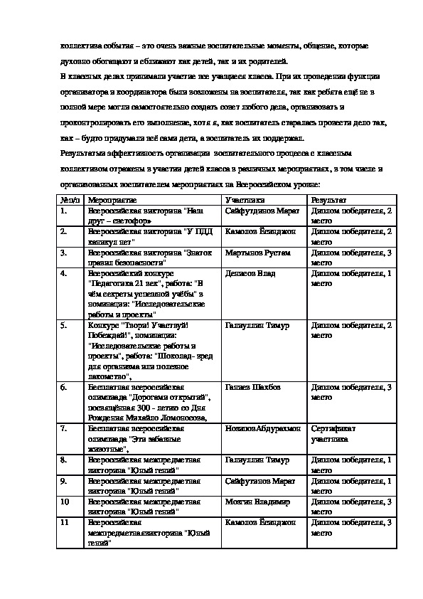 коллективом отражены в участии детей класса в различных мероприятиях, в том числе и