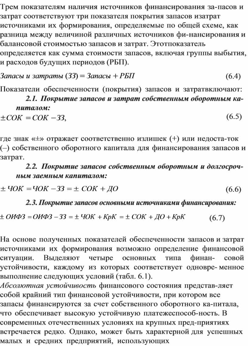где знак «±» отражает соответственно излишек (+) или недоста- ток (–) собственного оборотного капитала для финансирования запасов и затрат.