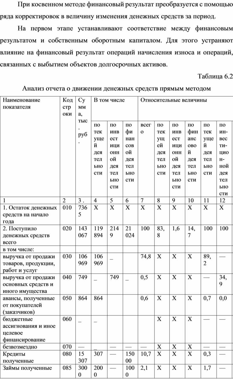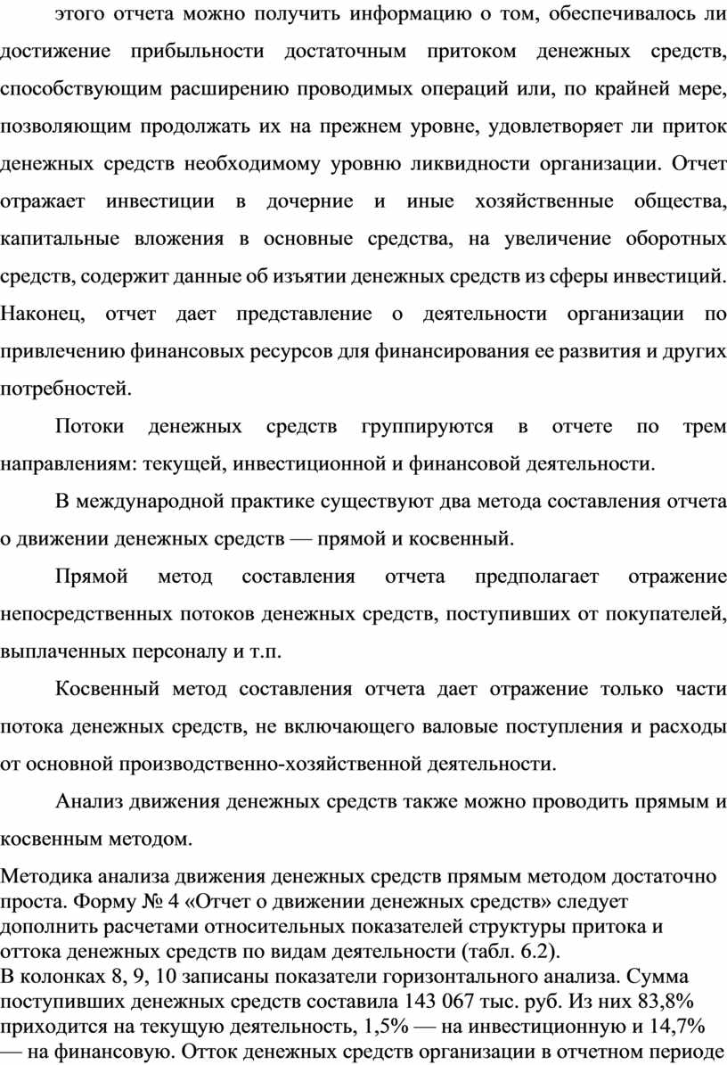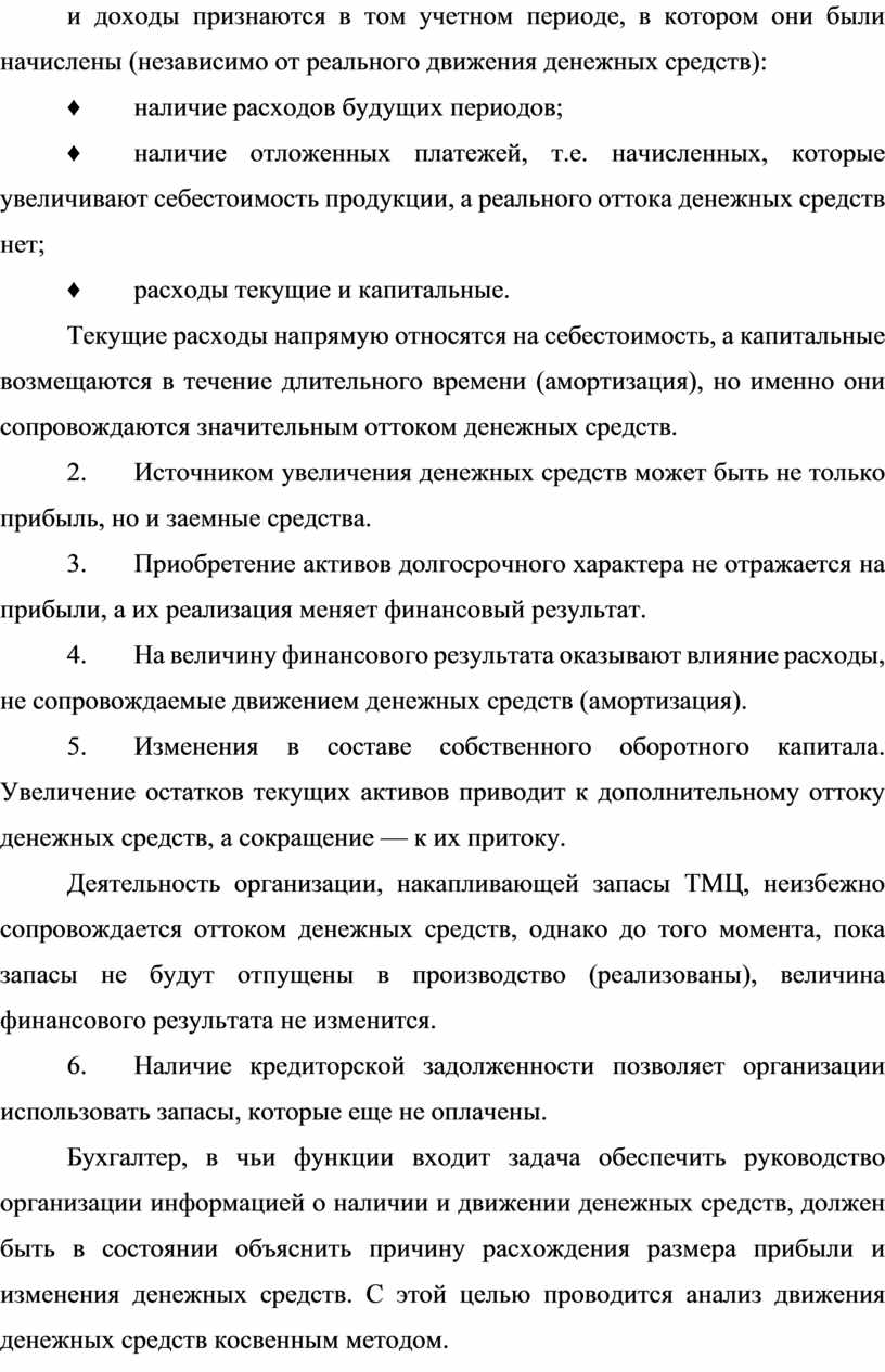 Главным недостатком прямого метода анализа движения денежных средств является то, что он не раскрывает взаимосвязи полученного финансового результата и изменения денежных средств на счетах организации.