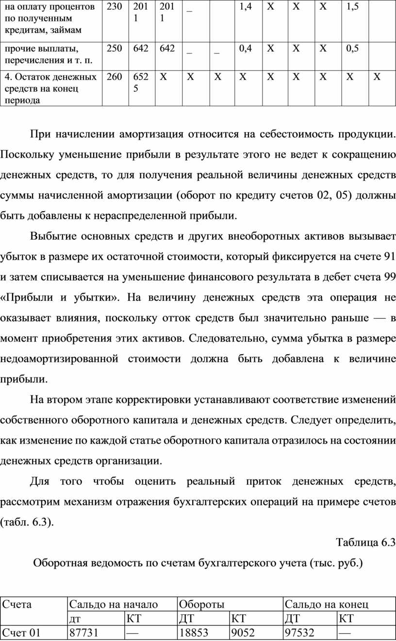 При начислении амортизация относится на себестоимость продукции. Поскольку уменьшение прибыли в результате этого не ведет к сокращению денежных средств, то для получения реальной величины денежных средств суммы начисленной амортизации (оборот по кредиту счетов 02, 05) должны быть добавлены к нераспределенной прибыли.