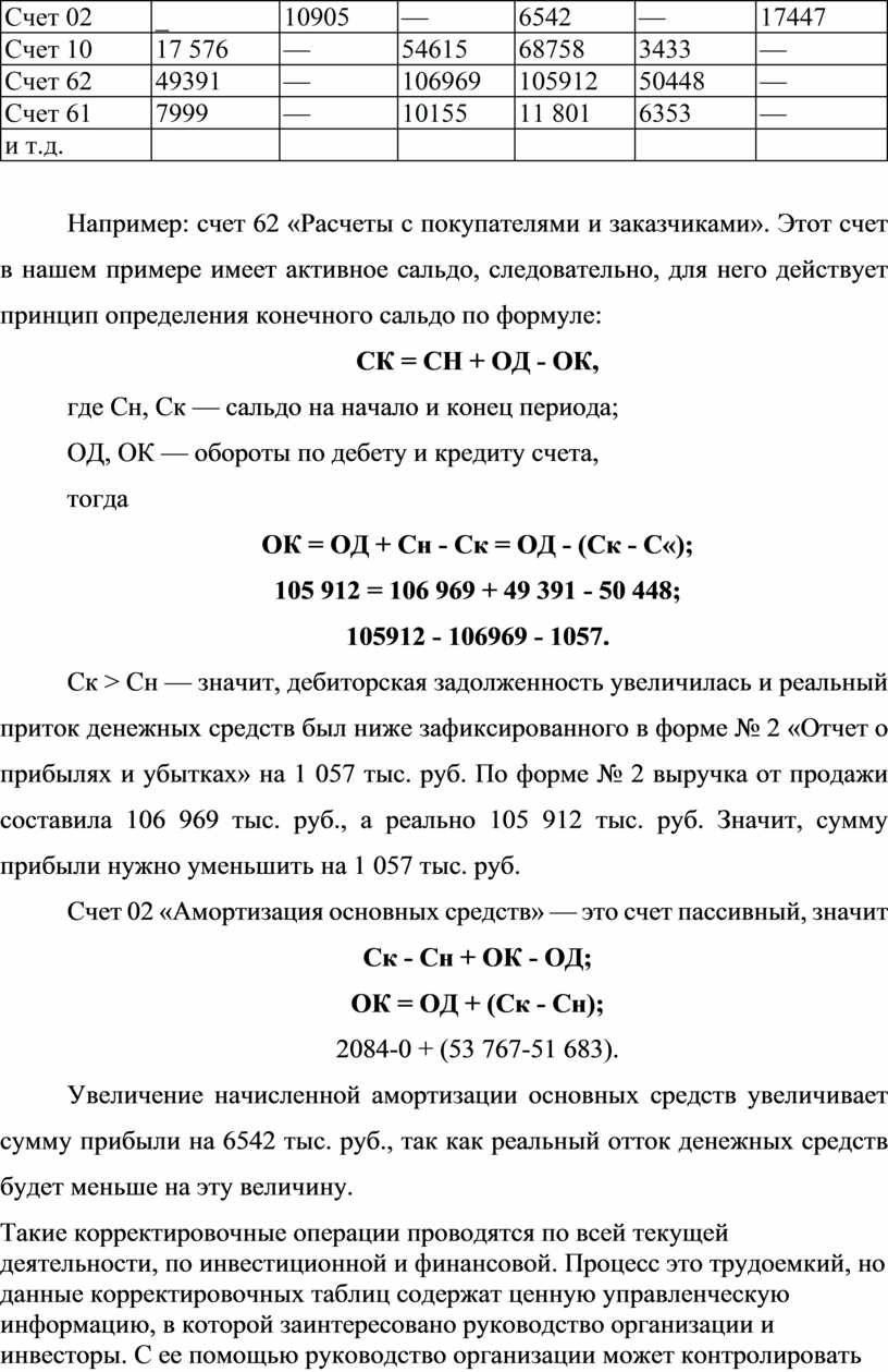 Такие корректировочные операции проводятся по всей текущей деятельности, по инвестиционной и финансовой. Процесс это трудоемкий, но данные корректировочных таблиц содержат ценную управленческую информацию, в которой заинтересовано руководство организации и инвесторы. С ее помощью руководство организации может контролировать текущую платежеспособность, оценивать возможность дополнительных инвестиций.
