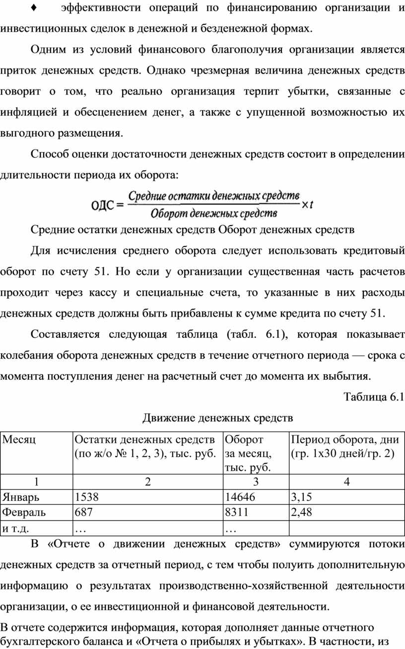 Составляется следующая таблица (табл. 6.1), которая показывает колебания оборота денежных средств в течение отчетного периода — срока с момента поступления денег на расчетный счет до момента их выбытия.
