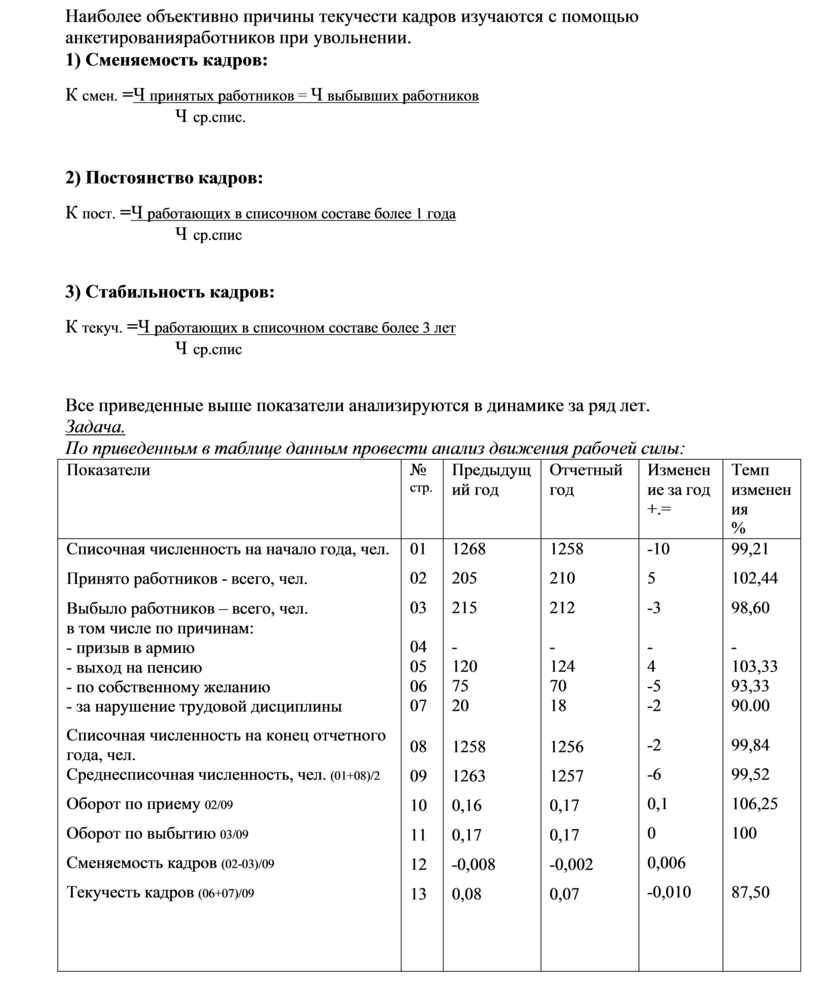 Анализ движения рабочей силы.
