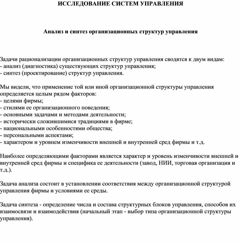 Анализ и синтез организационных структур управления