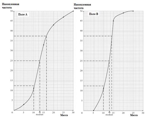 с) Результаты, соответствующие полю В, более оптимальны, так как по сравнению с данными, соответствующими полю А, расположены ближе к медиане. Поэтому потребление пшеницы, выращенной на поле В, будет предпочтительнее.
