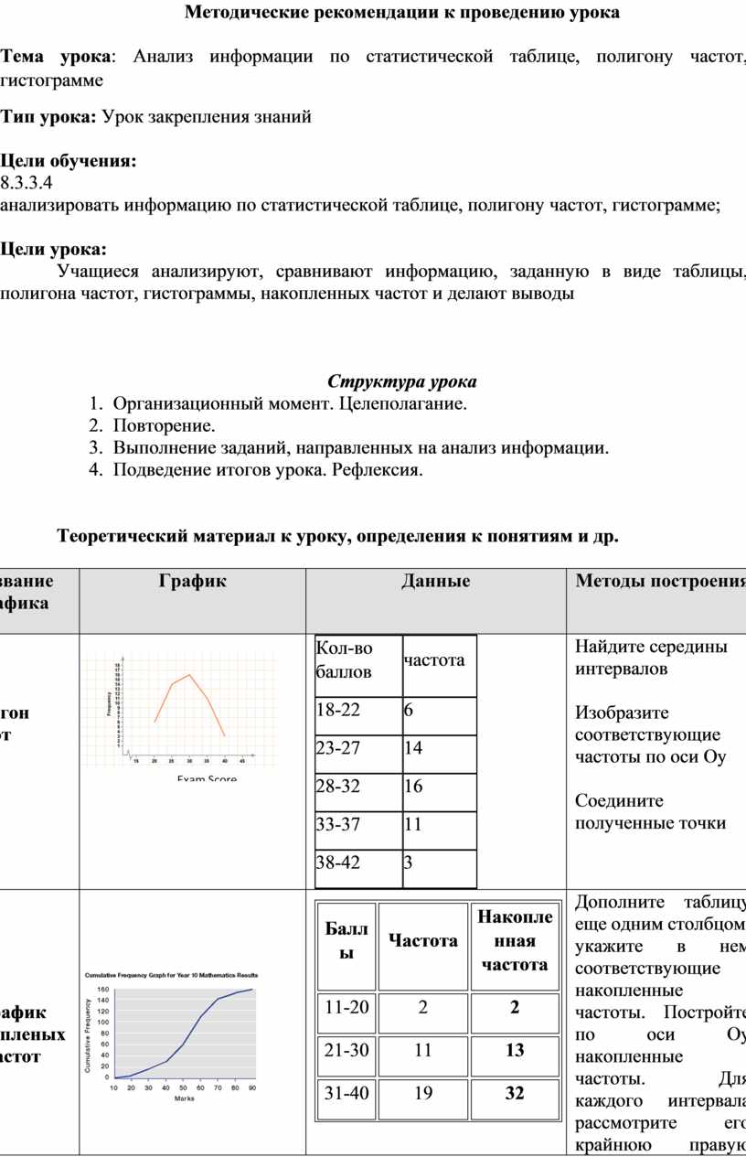 Тема урока: Анализ информации по статистической таблице, полигону частот, гистограмме