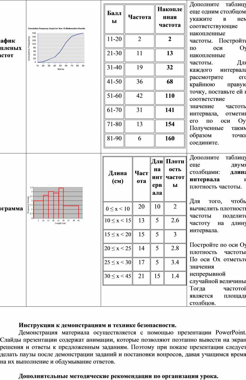 Учащиеся анализируют, сравнивают информацию, заданную в виде таблицы, полигона частот, гистограммы, накопленных частот и делают выводы