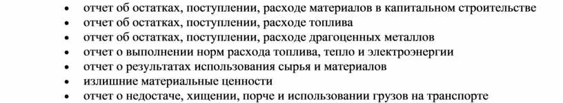 · отчет о результатах использования сырья и материалов