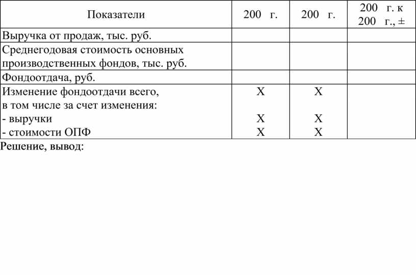 Изменение фондоотдачи всего, в том числе за счет изменения: - выручки - стоимости ОПФ |