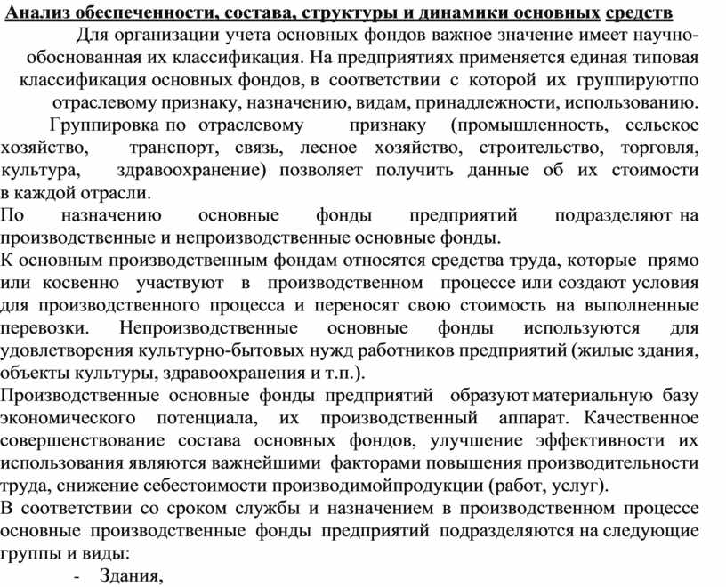Анализ обеспеченности, состава, структуры и динамики основных средств