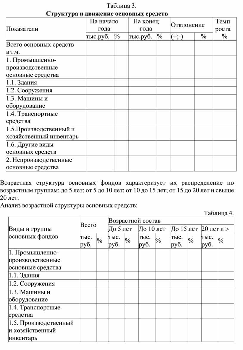 Анализ структуры и движения основных средств: