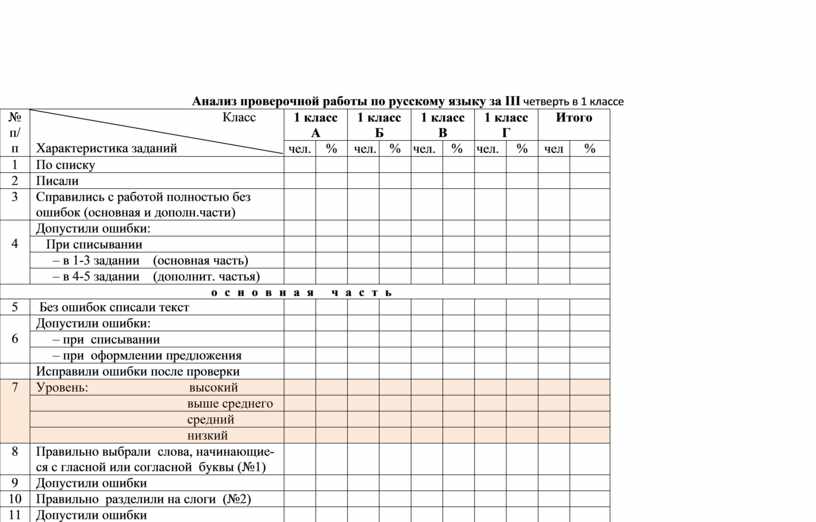 Анализ проверочной работы по русскому языку за III четверть в 1 классе
