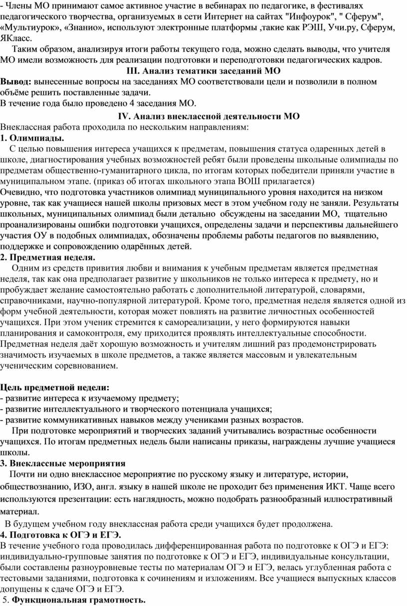 На основании вышеизложенного работу МО учителей общественно-гуманитарного цикла следует признать удовлетворительной.