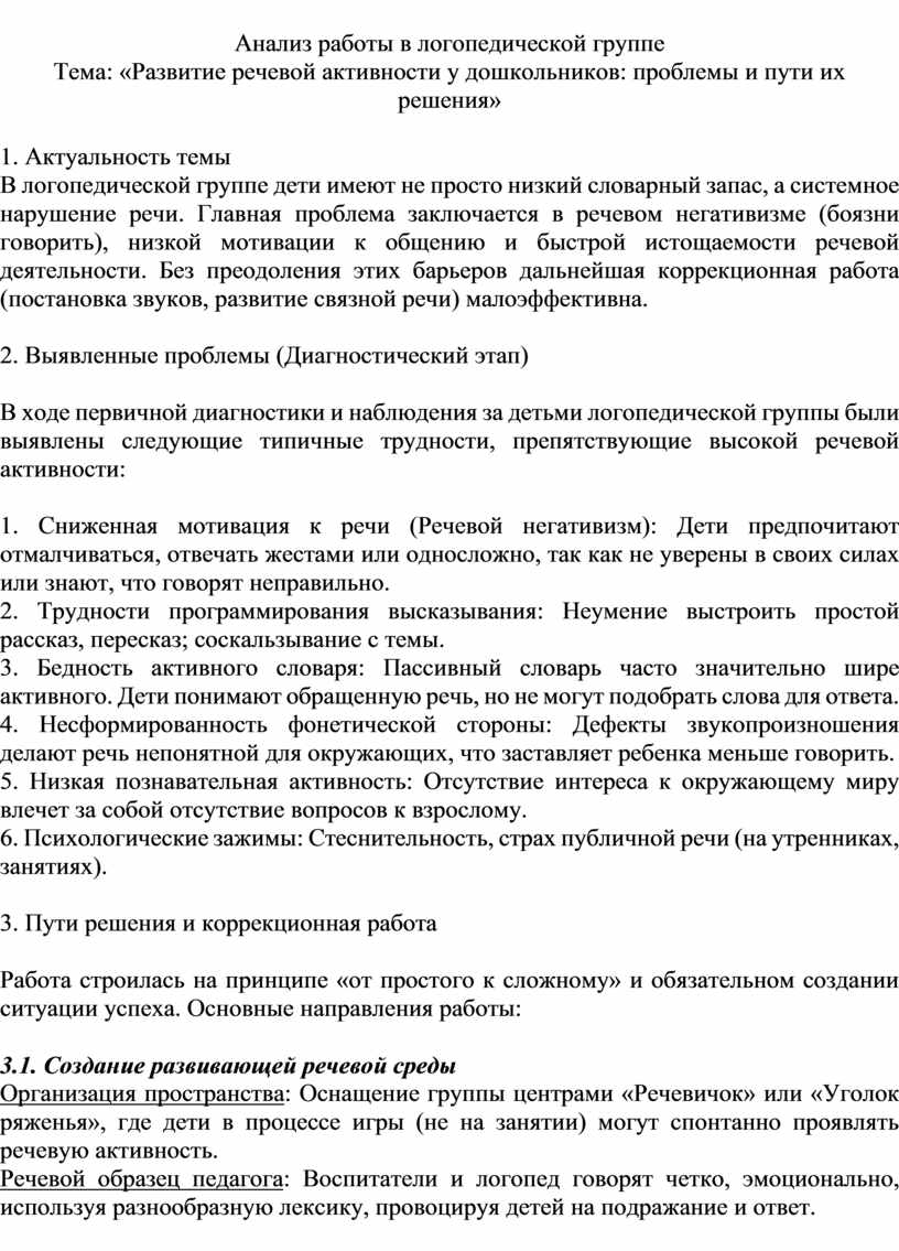 Анализ работы в логопедической группе