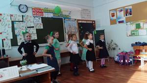 На линейке ребята услышали «разговор красок». Классам были розданы план на всю неделю. Все учащиеся были одеты в синий цвет или присутствовали элементы синего цвета.
