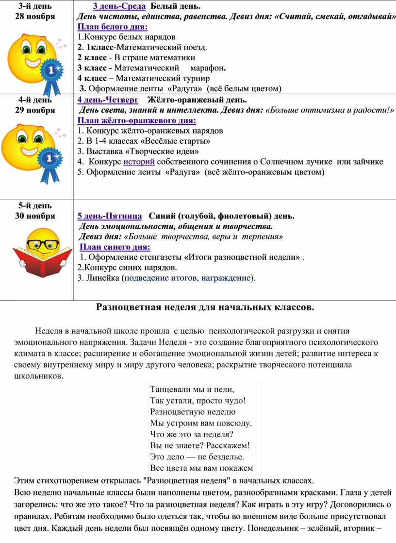 День подведения итогов «Разноцветной недели» в начальной школе.