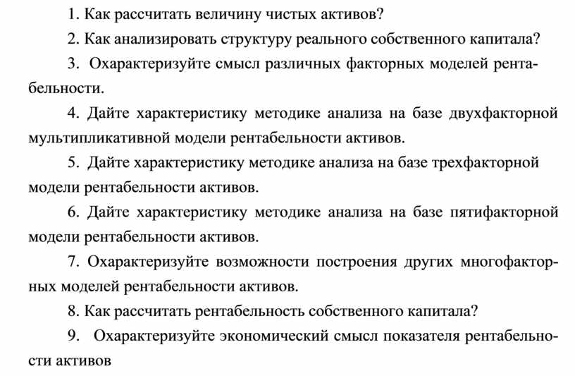 – уметь анализировать структуру реального собственного капитала, охарактеризовать смысл различных факторных моделей рентабельности активов, рассчитывать общую рентабельность активов, рентабельность производственных активов, рентабельность собственного капитала.