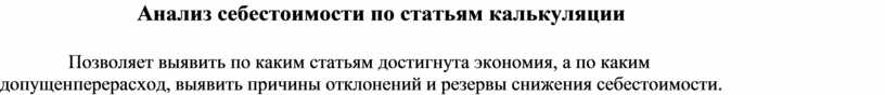 Анализ себестоимости по статьям калькуляции