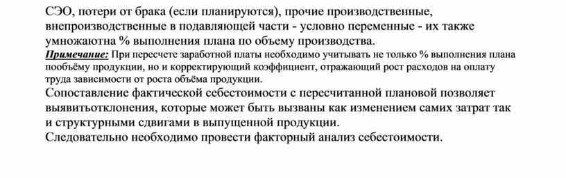 СЭО, потери от брака (если планируются), прочие производственные, внепроизводственные в подавляющей части - условно переменные - их также умножают на % выполнения плана по объему производства.