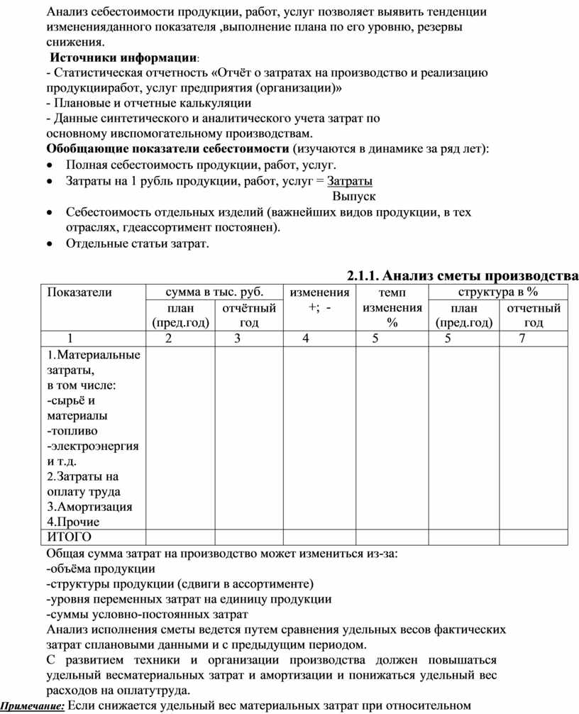 Анализ себестоимости продукции, работ, услуг позволяет выявить тенденции изменения данного показателя ,выполнение плана по его уровню, резервы снижения.