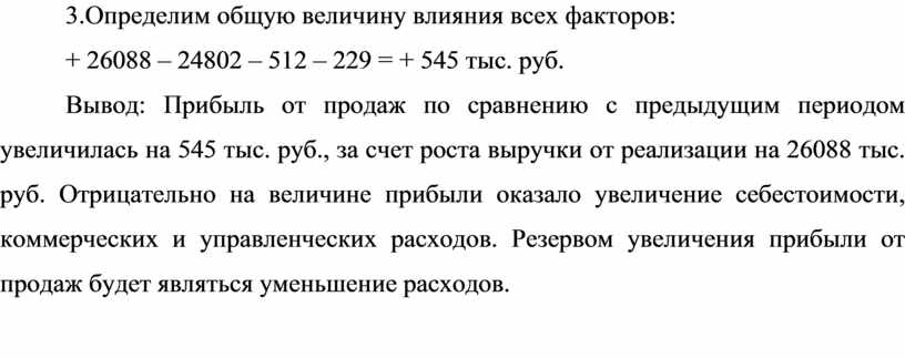 Следовательно, на прибыль от продаж оказывают влияние следующие факторы: