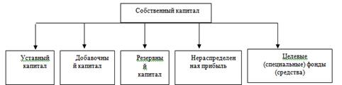 Собственный капитал состоит из уставного, добавочного и резервного капитала, нераспределенной прибыли и целевых (специальных) фондов (рис.). Коммерческие организации, функционирующие на принципах рыночной экономики, как правило, владеют коллективной или корпоративной собственностью.