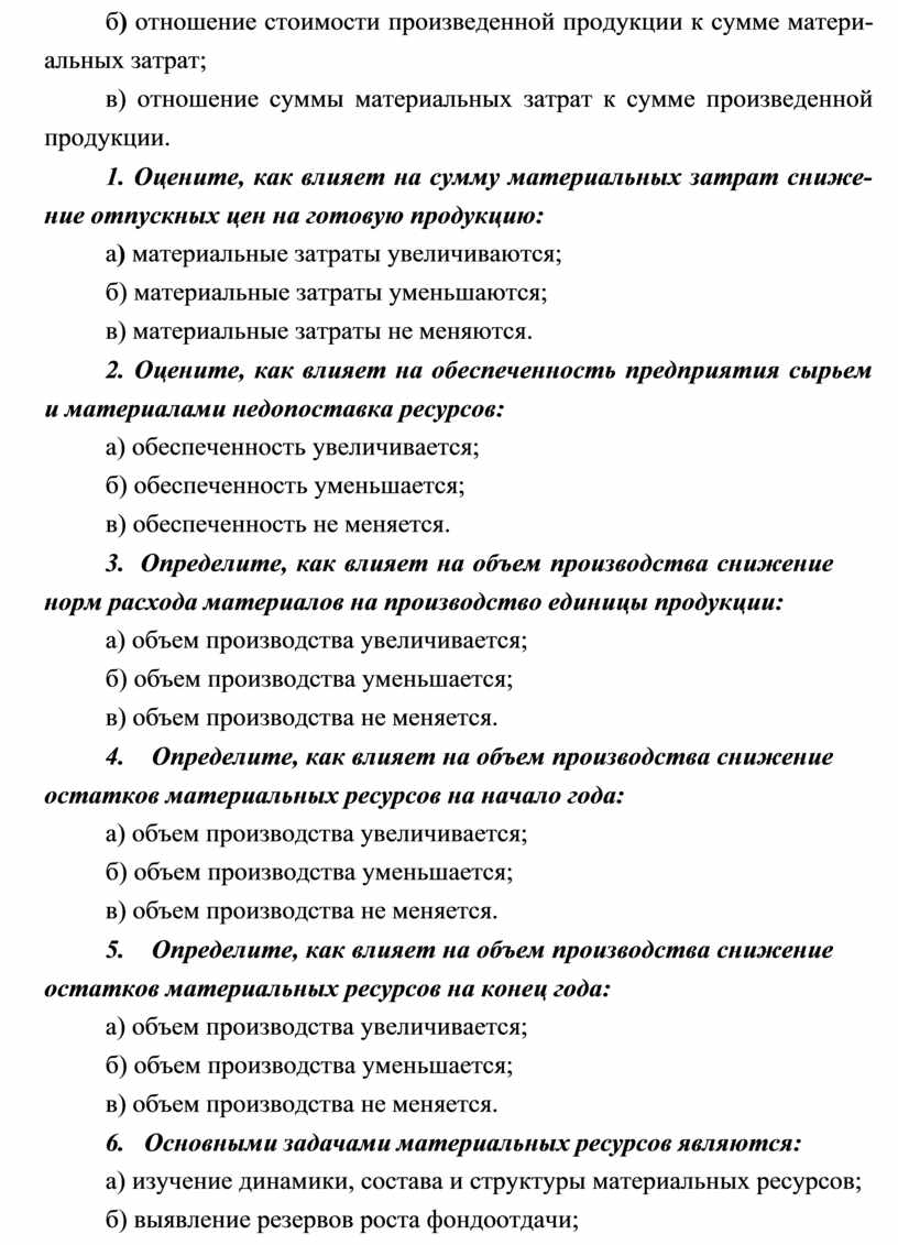 10. Определите, как влияет на объем производства снижение остатков материальных ресурсов на начало года: