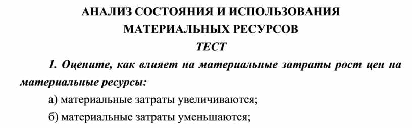 АНАЛИЗ СОСТОЯНИЯ И ИСПОЛЬЗОВАНИЯ МАТЕРИАЛЬНЫХ РЕСУРСОВ