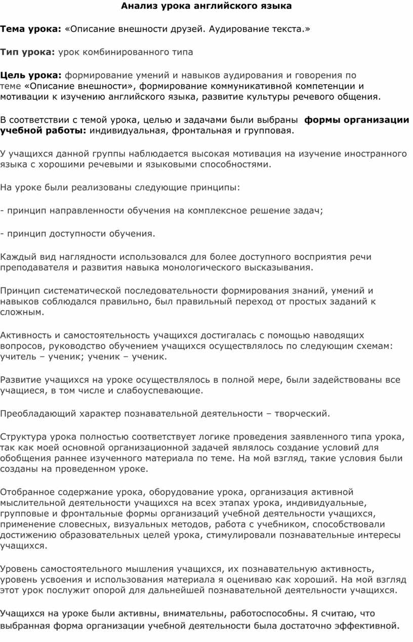 Тема урока: «Описание внешности друзей. Аудирование текста.»