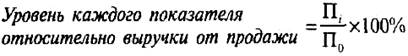 3. Уровень каждого показателя относительно выручки от продажи (в %)